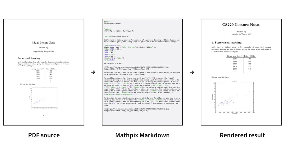 You can now process entire PDFs using Mathpix's OCR technology and get LaTeX, DOCX, Markdown, or HTML results via Snip or the API...